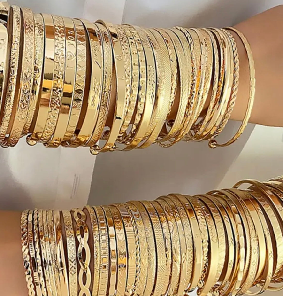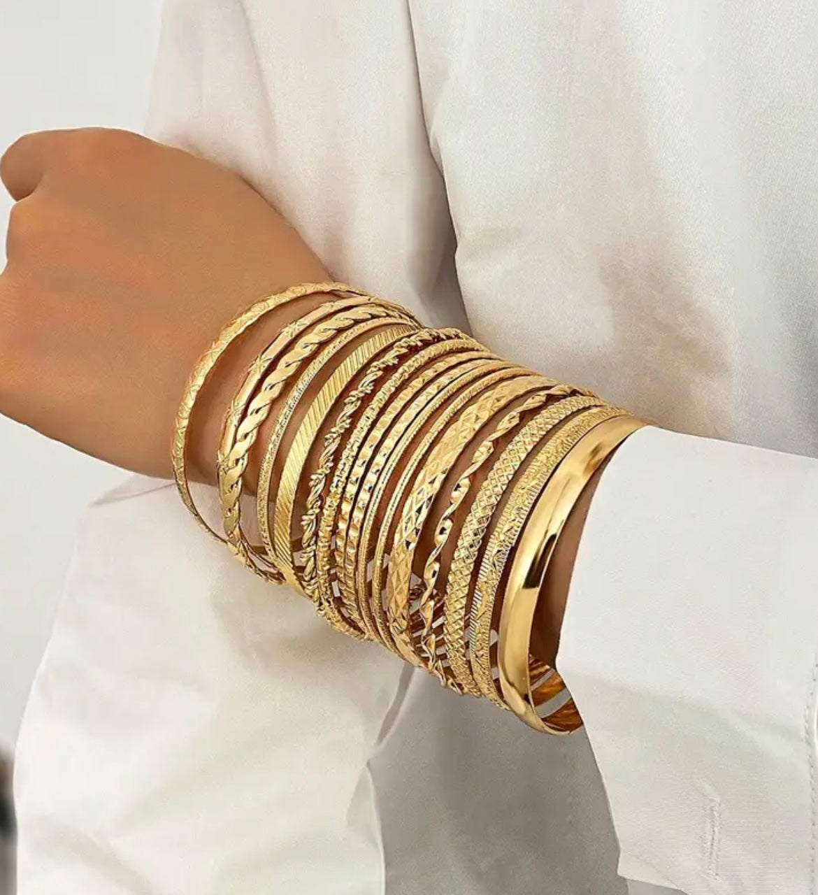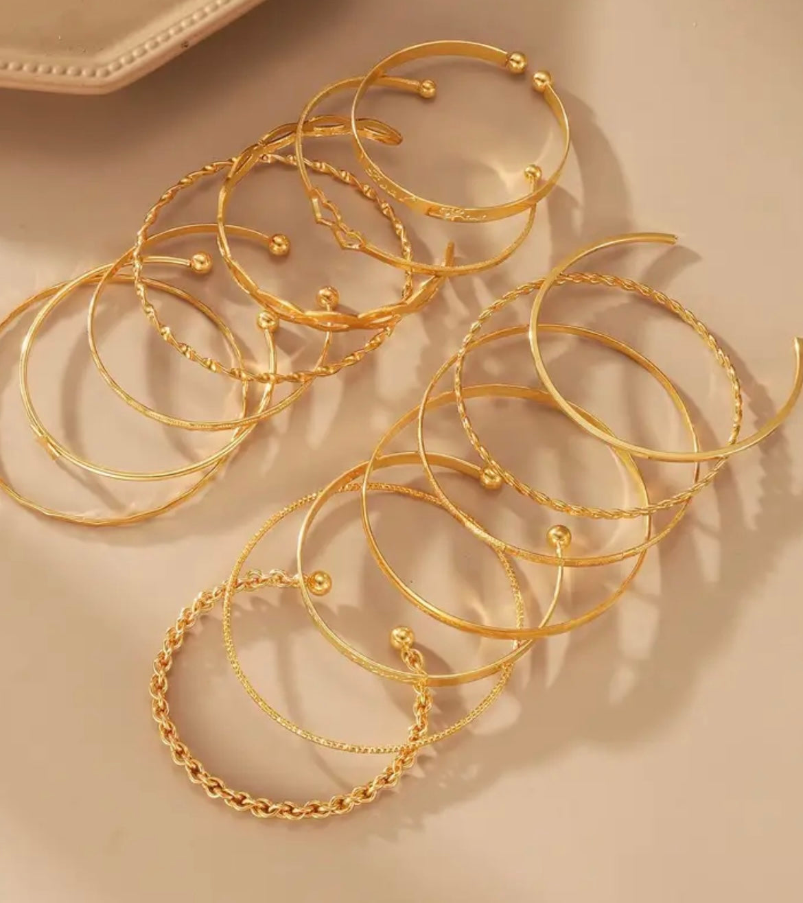12pcs Set Women's Golden Bracelet Collection - Elegant Golden-Toned Stackable Bracelets with Heart, Link & Bead Charms, Luxurious Everyday Jewelry Gift Set for Christmas, Birthdays, Valentine's Day - Durable Tarnish-Resistant Metal-Like Material