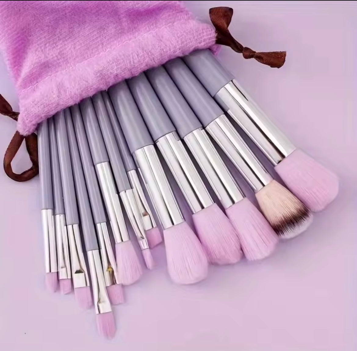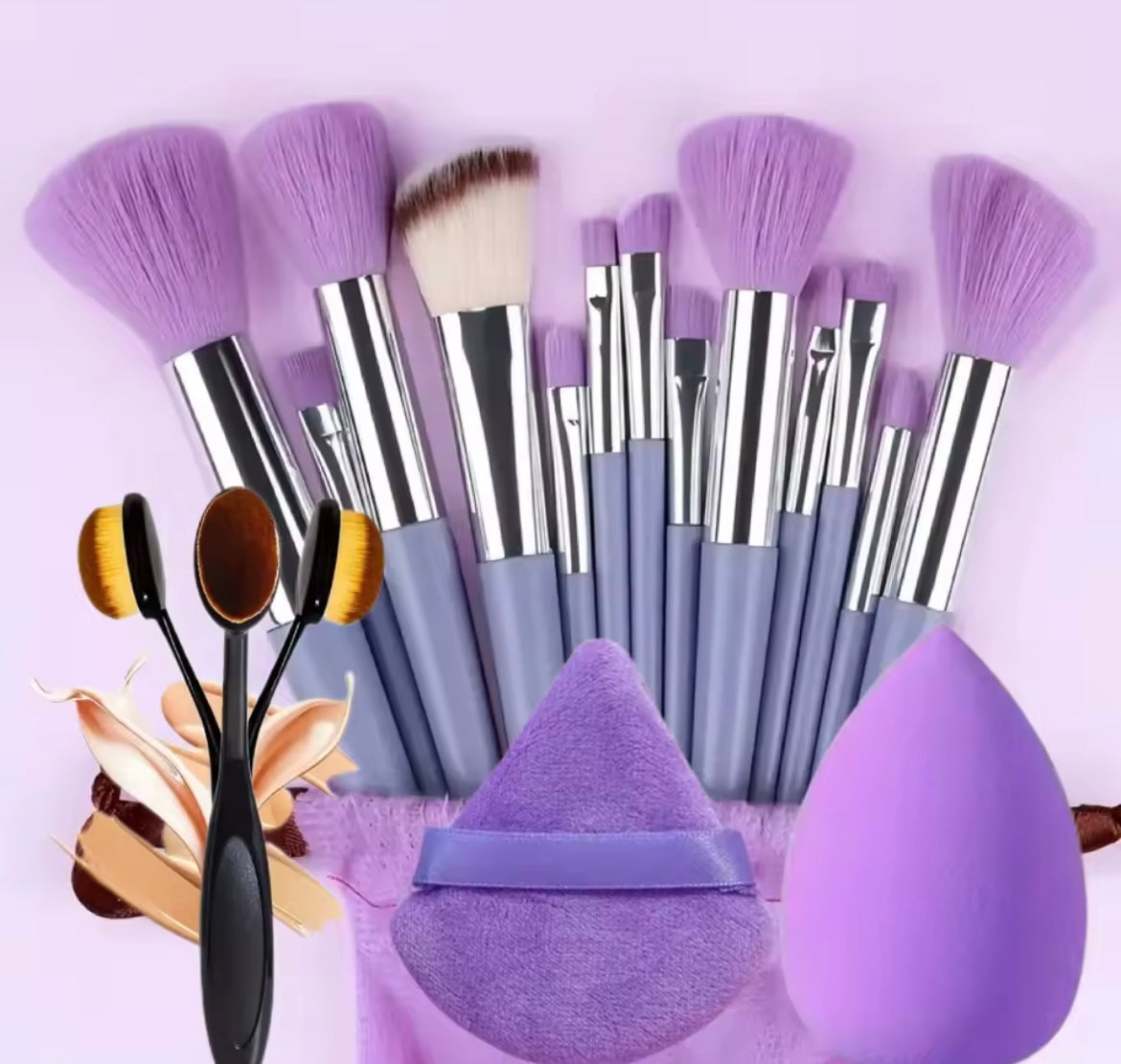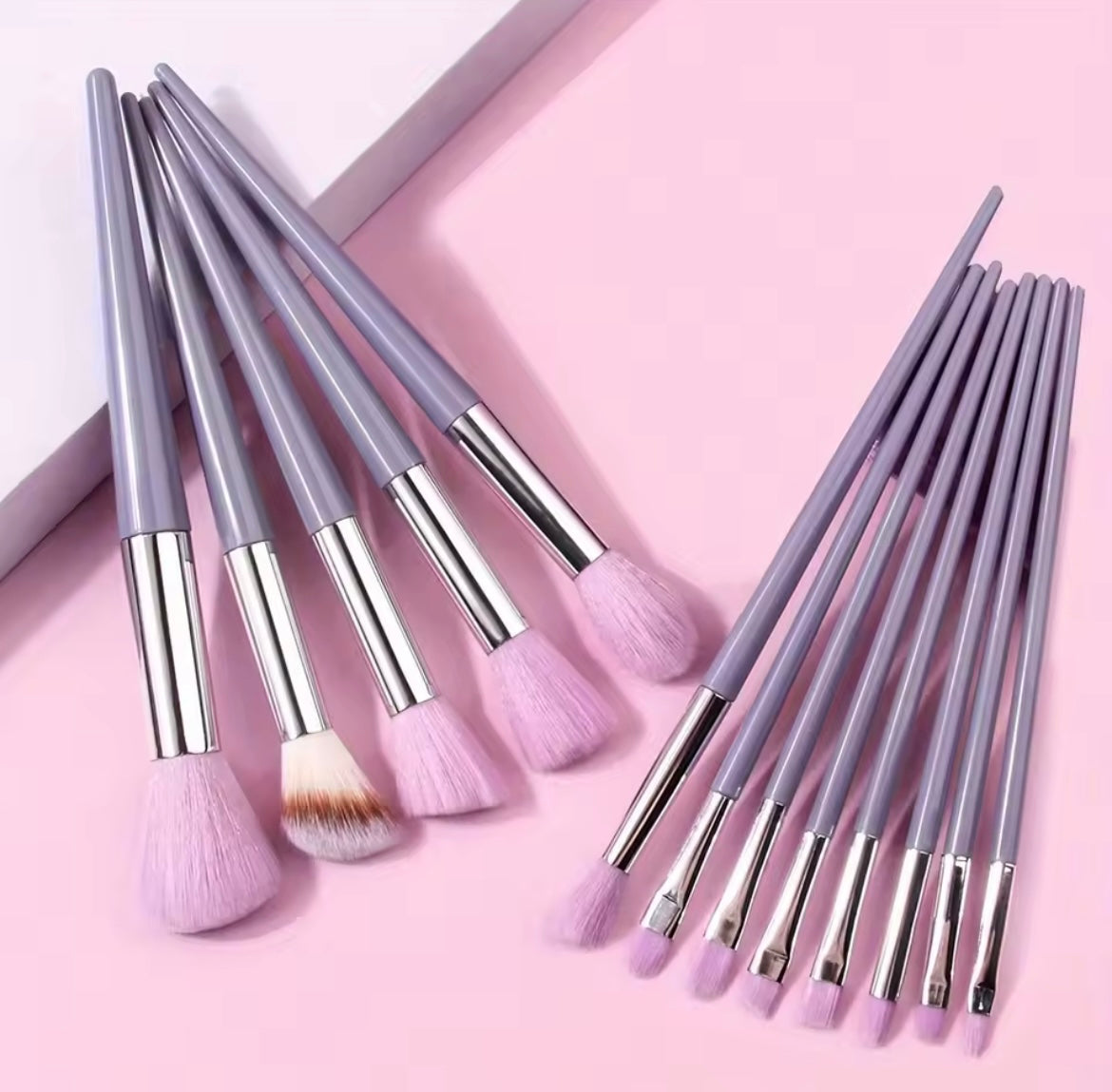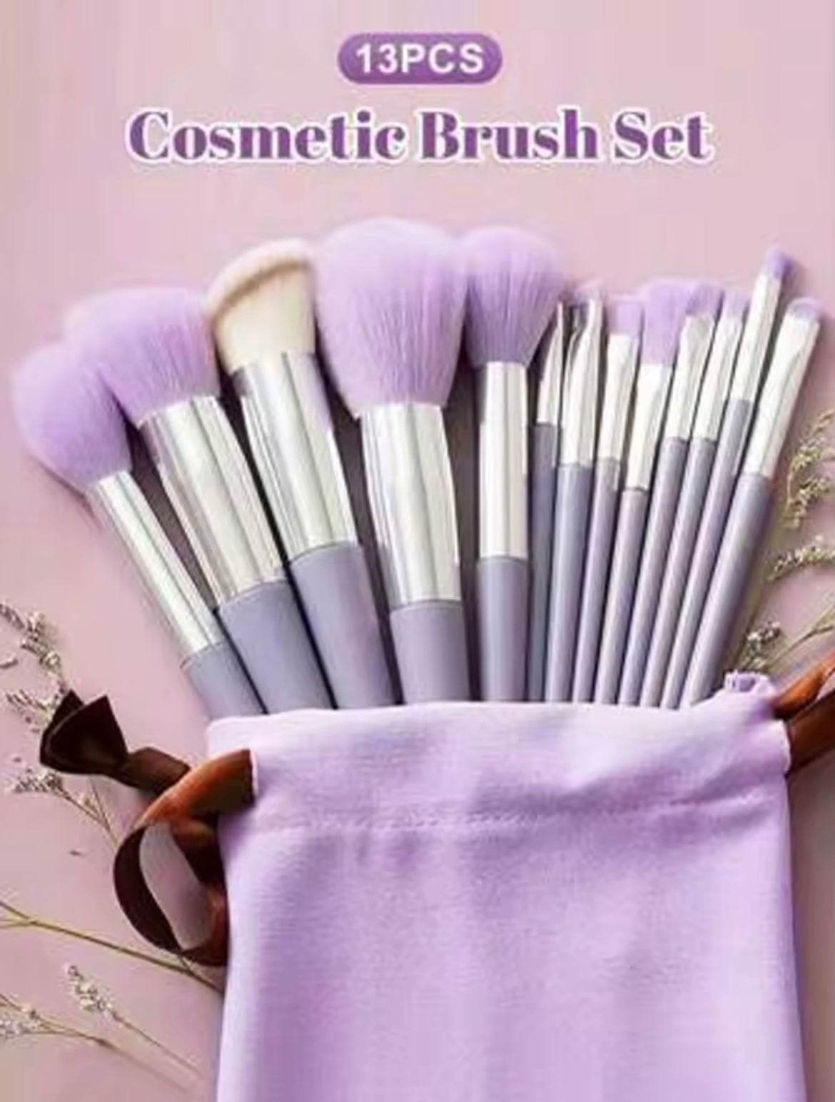 13 PCS Purple Makeup Brush Set with Blender Sponge & Powder Puff – Complete Cosmetic Brush