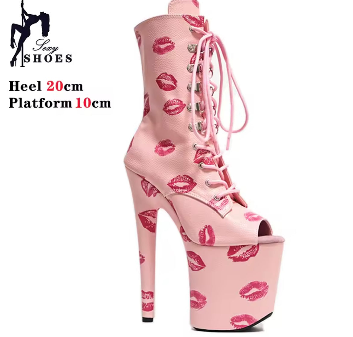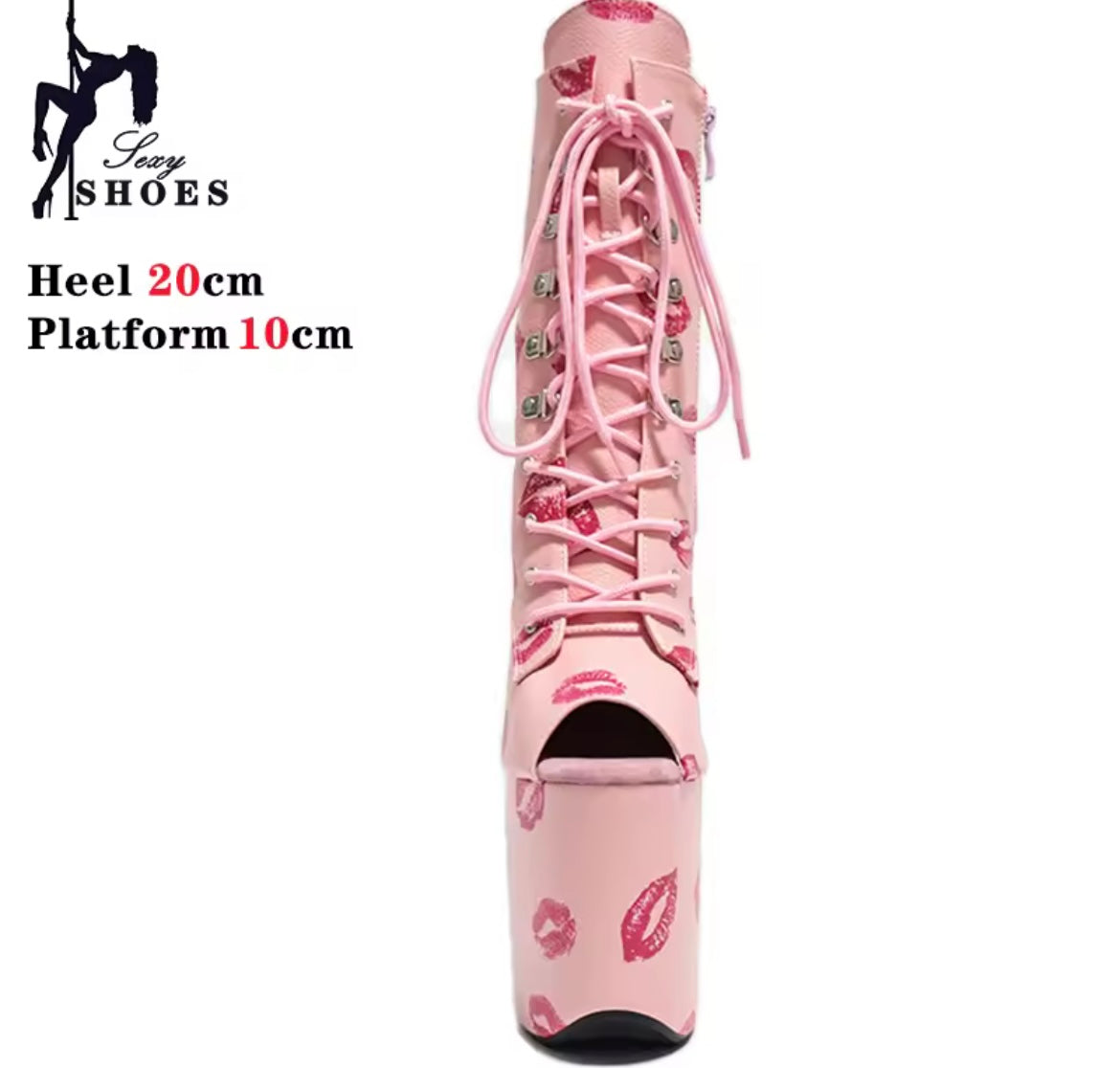 17cm 20cm Sexy Women Ankle Boots Zip Up Platform Red lip Print Block High Heels