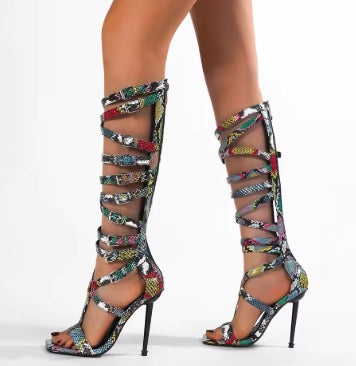 2025 Fashion Women Gladiator Sandals Stiletto High Heel Summer Boots Lace Up Cross-tied Sexy Sandals Mesh Over Knee Party Shoes