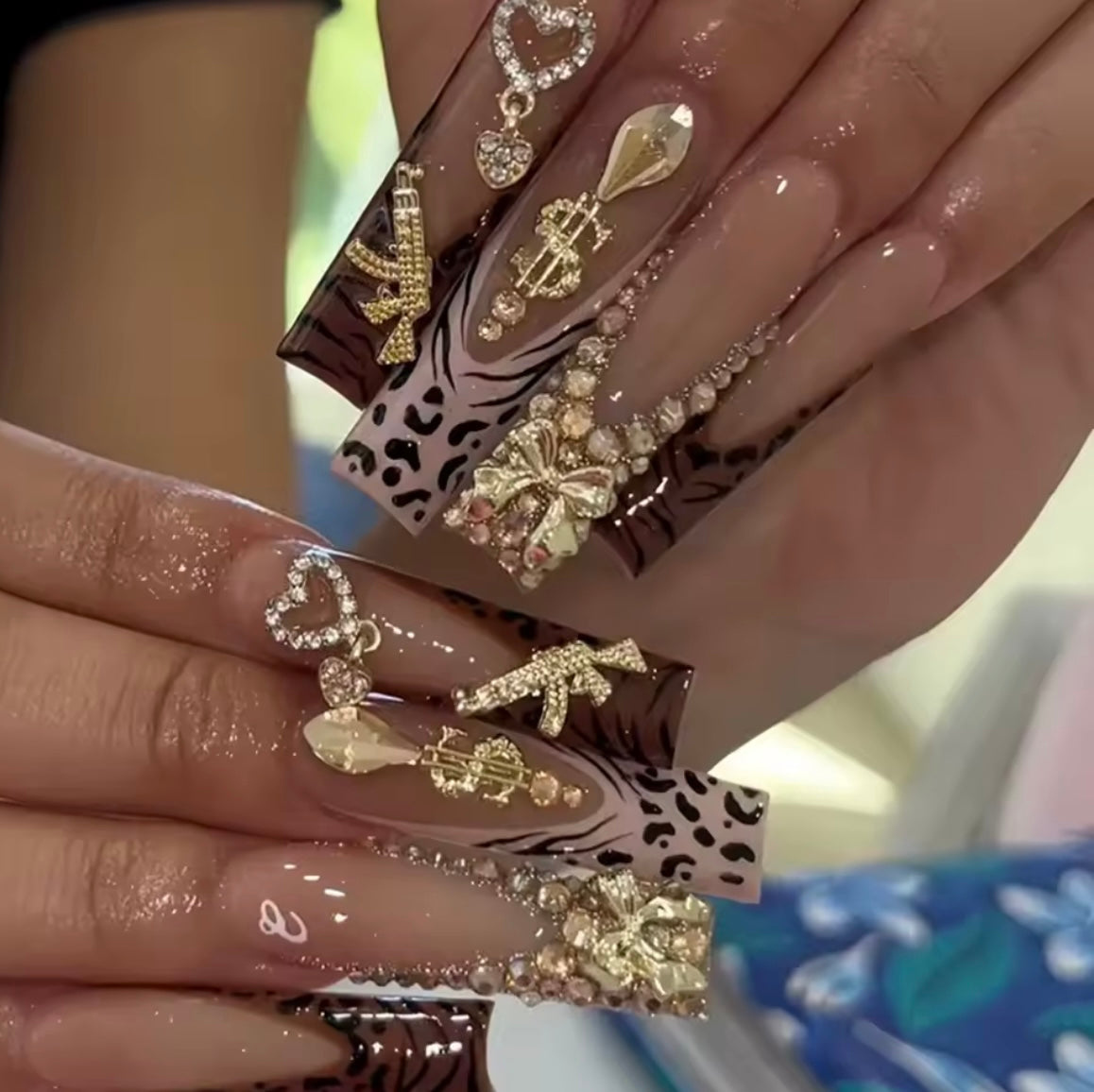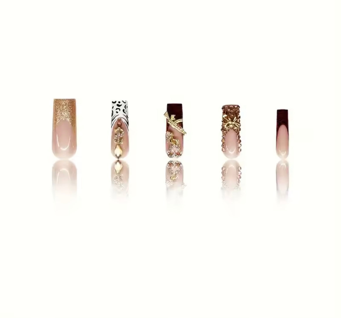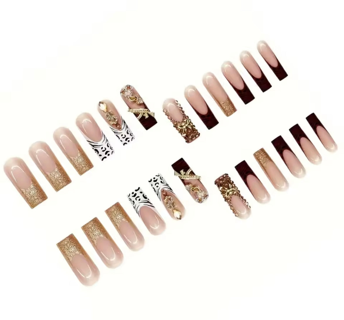 24 pieces of long square armor gold French white leopard print French 3d gold gun flas