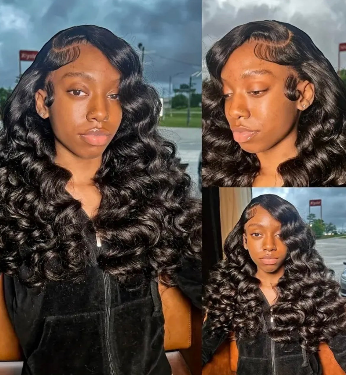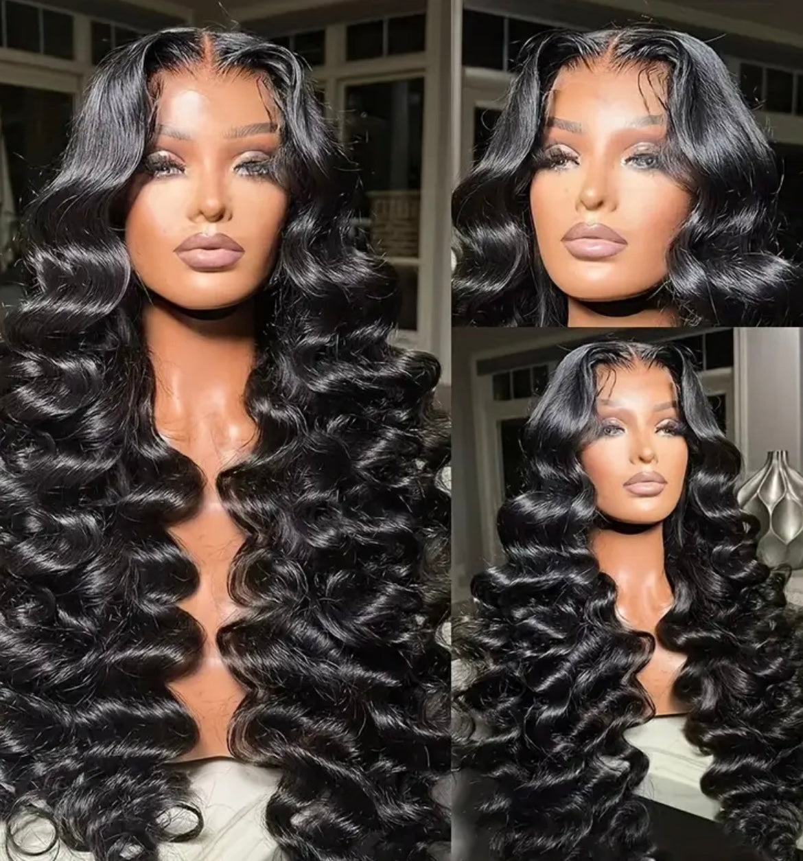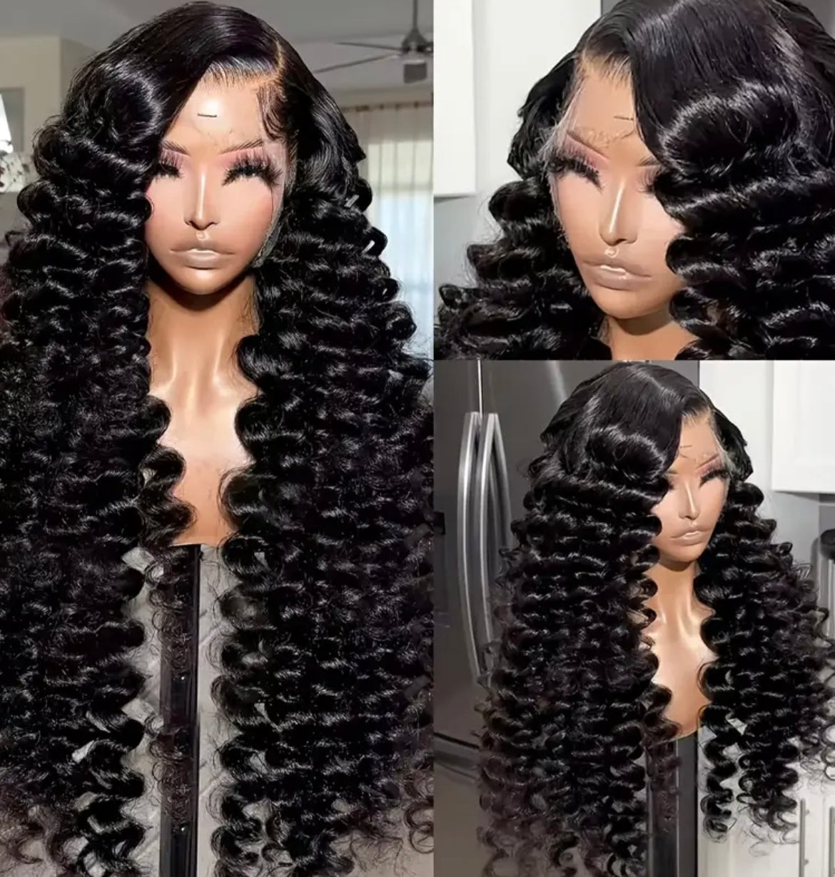 250% Density 4X4 Deep Wavy Wigs With Tiny Knots 100% Brazlilian Virgin Human Hair #1B Wave Lace Frontal Wigs Natural Color Glueless Pre Cut Wigs Pre Plucked With Baby Hair HD Transparent Lace Front Wigs For Women Long 40inch