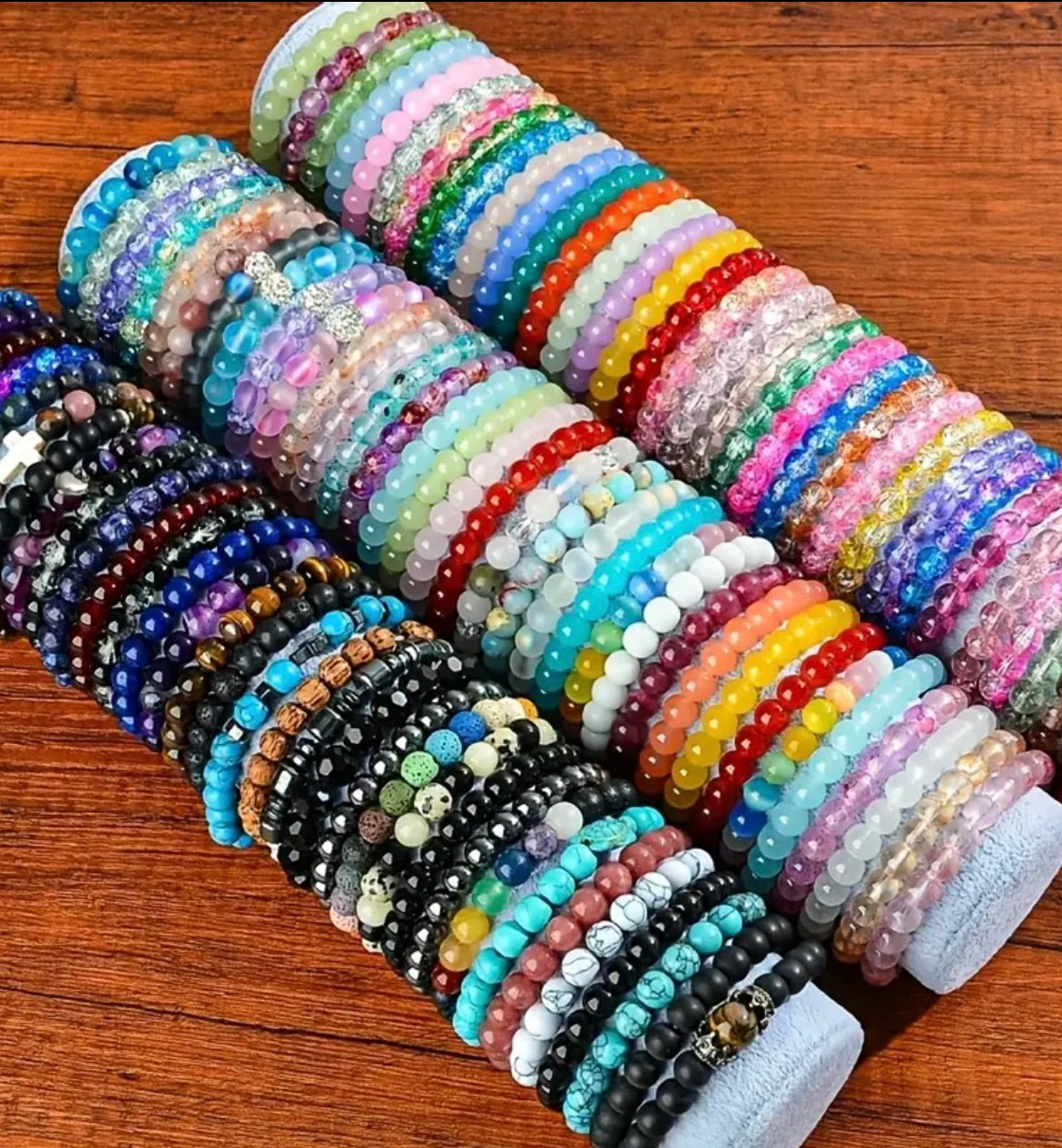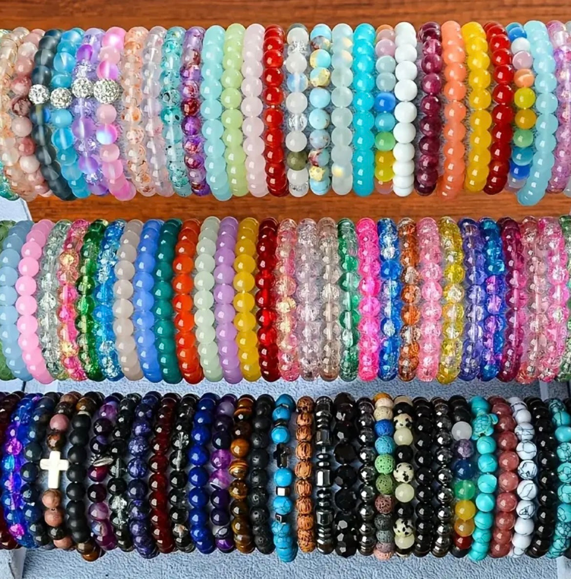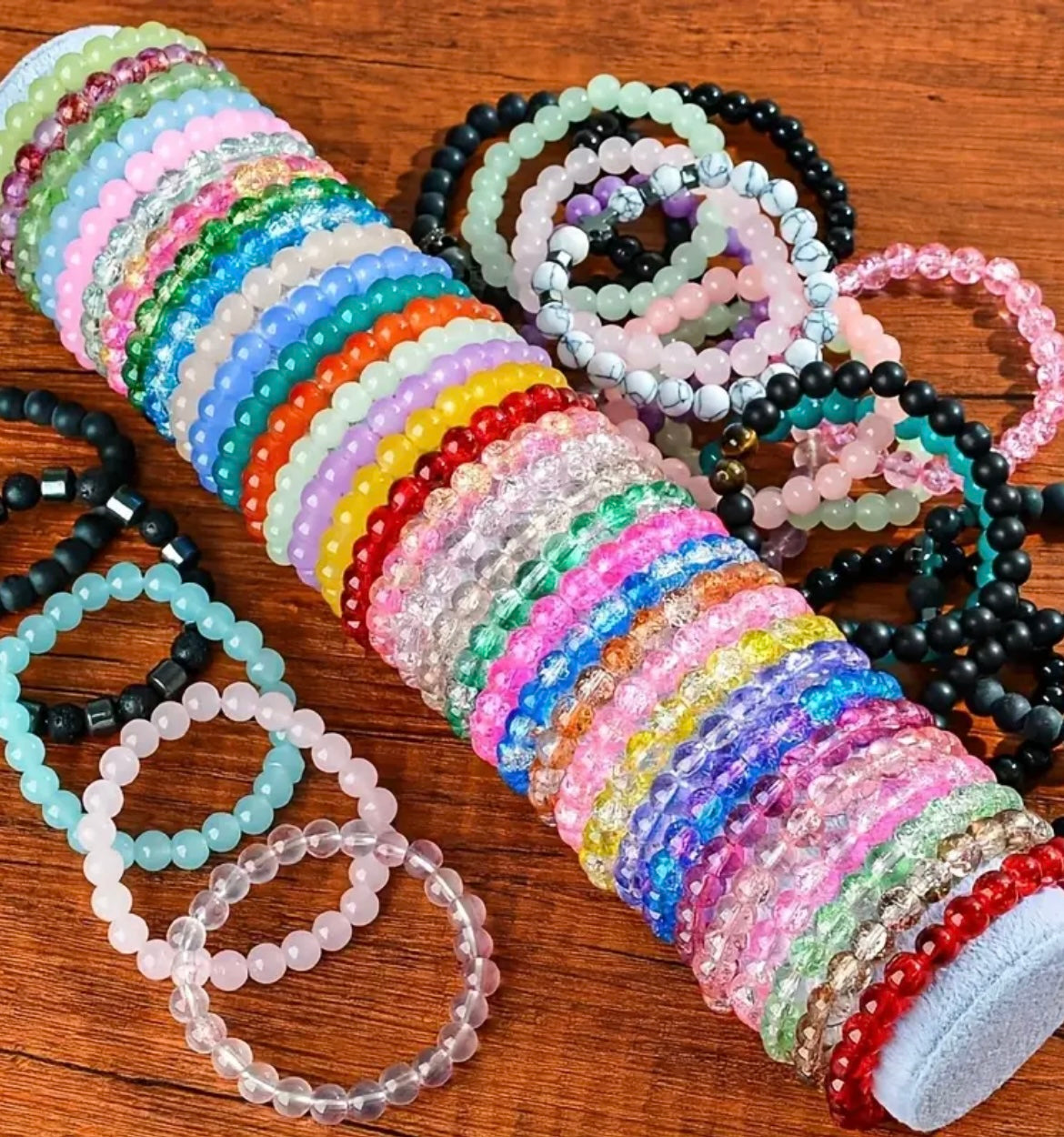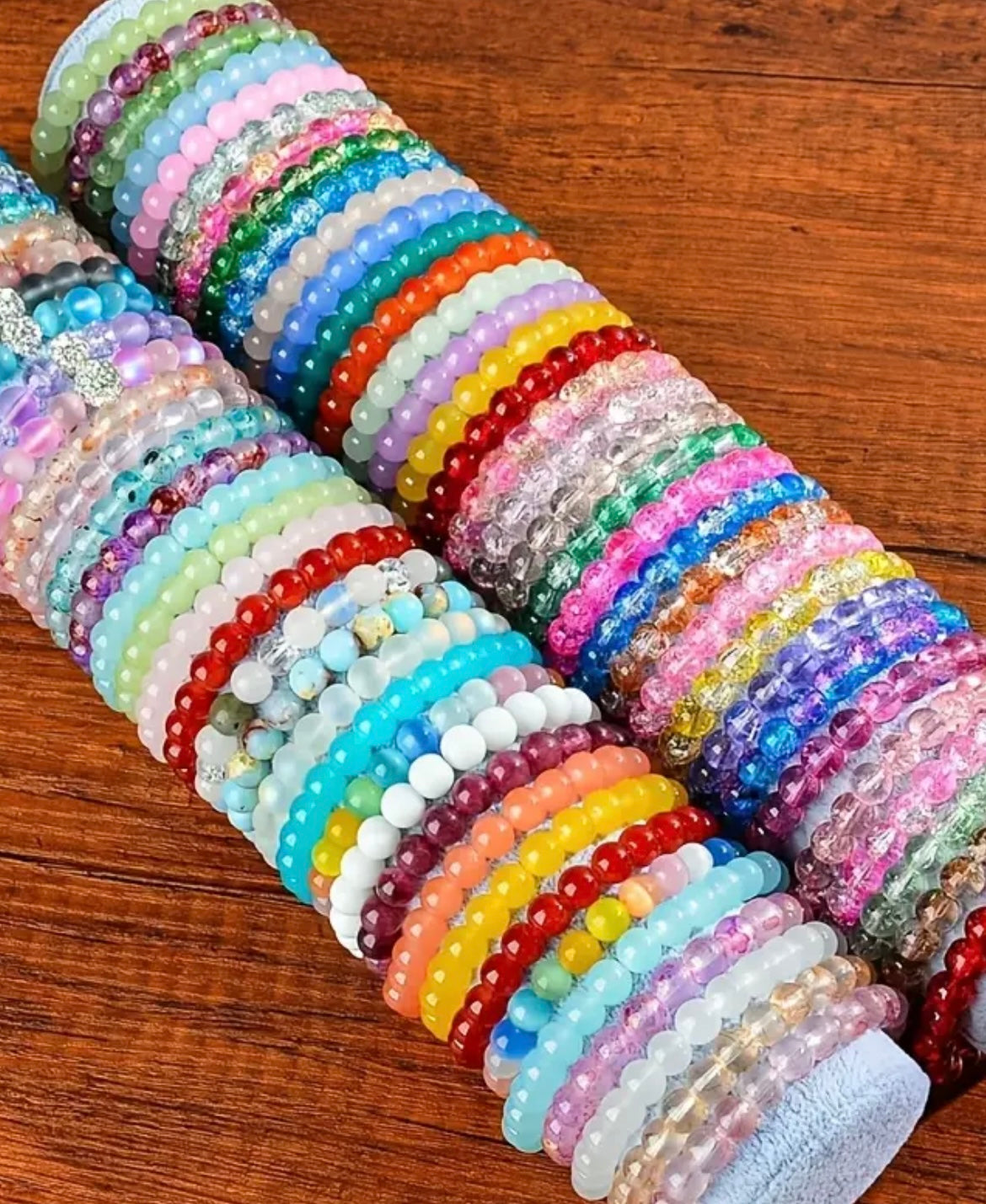 30pcs Boho-Chic Handcrafted Bead Bracelet Set - Colorful Crackled Glass Beads, Ideal For Casual Attire & Vacation - Perfect Gift For Women, Friends & Family Random