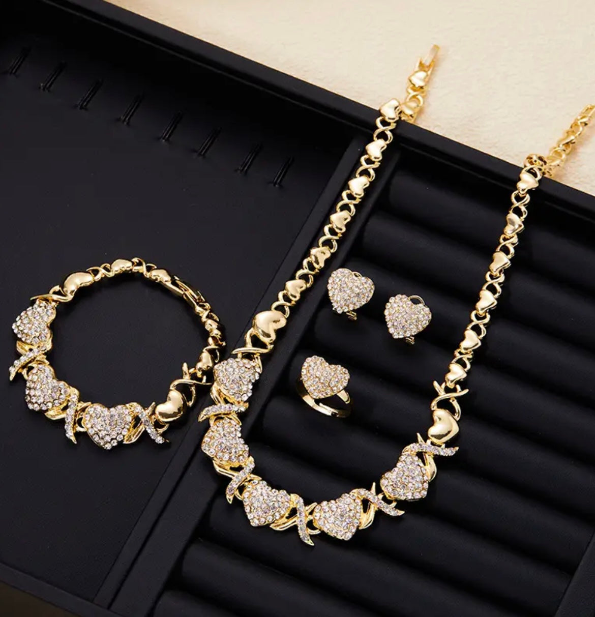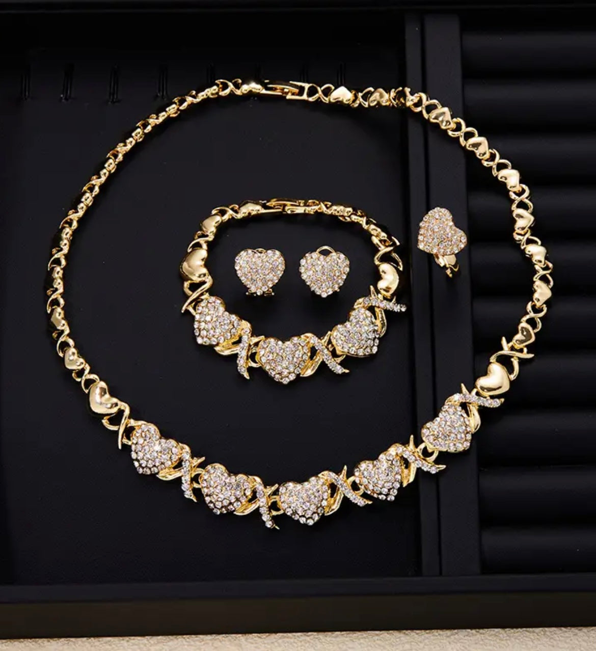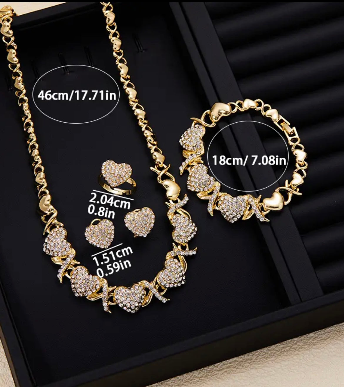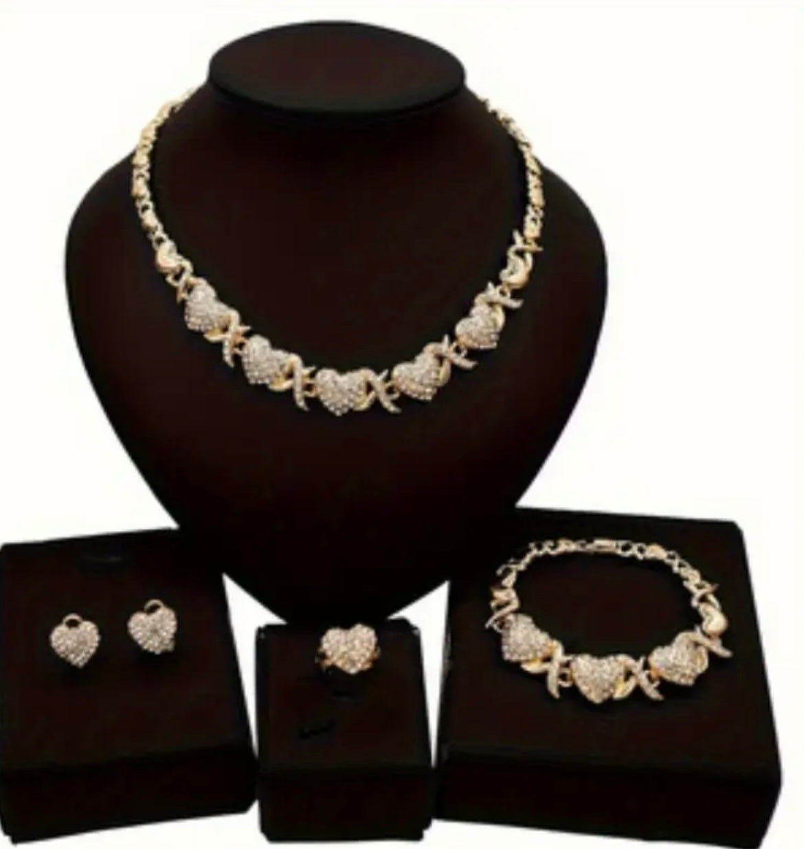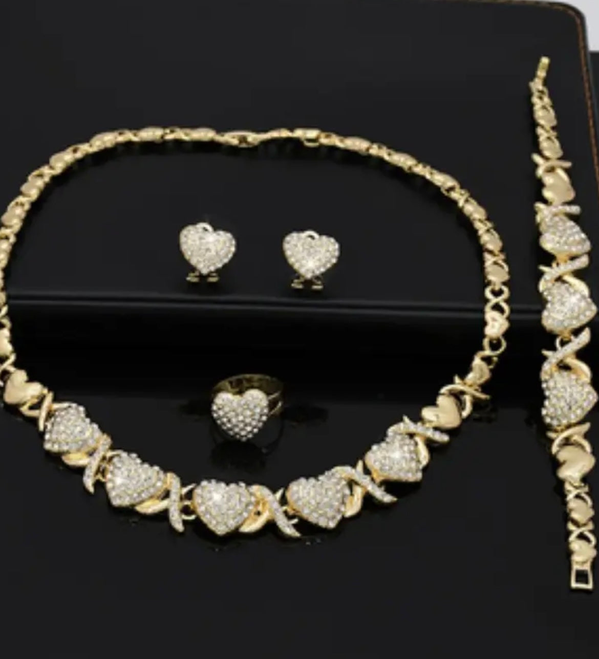 4pcs/set, Classic and Popular Heart-shaped Pendant Necklace, Ring, Earring, Bracelet Set, Engagement Gift, Bridal Wedding Accessory