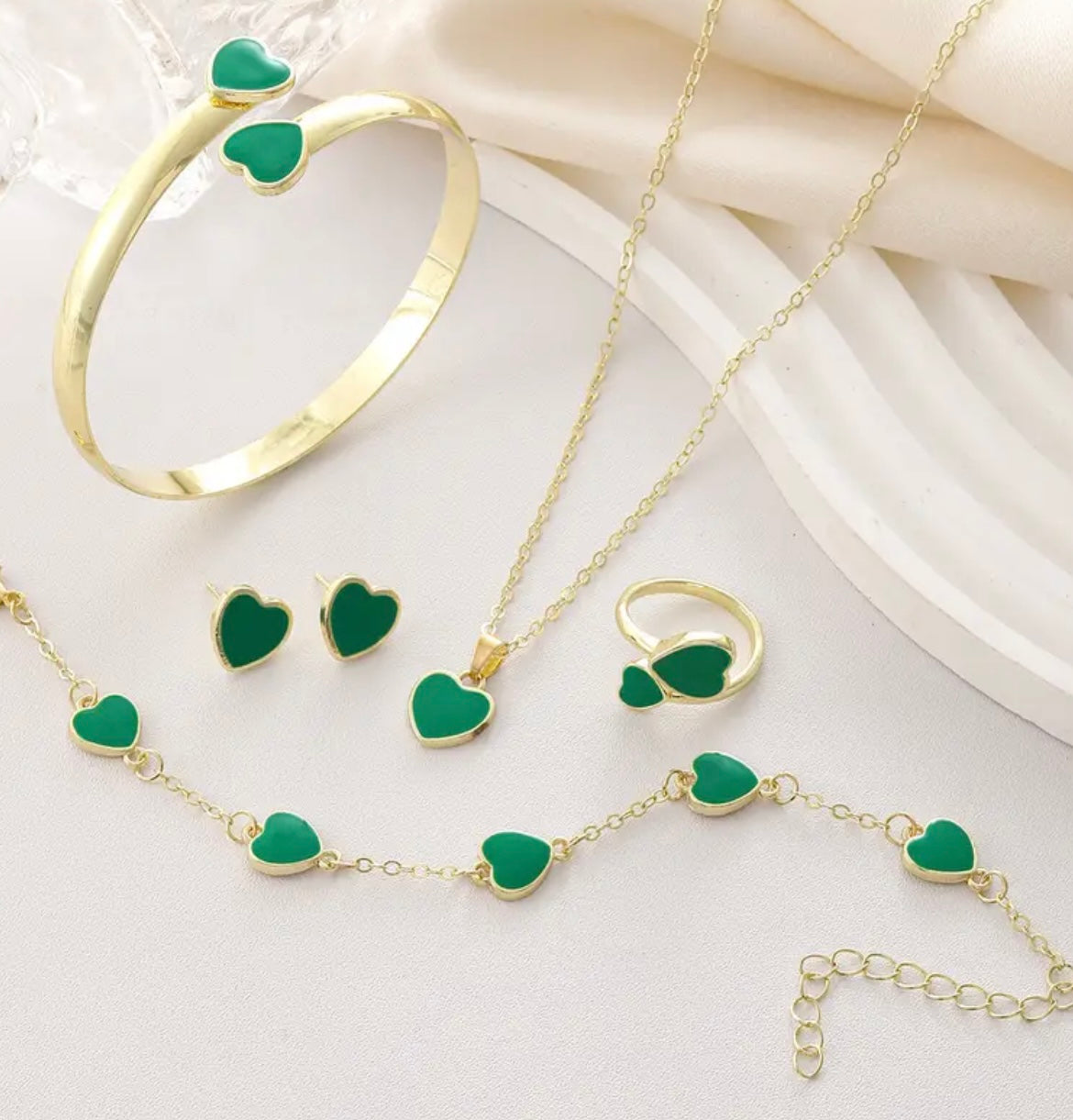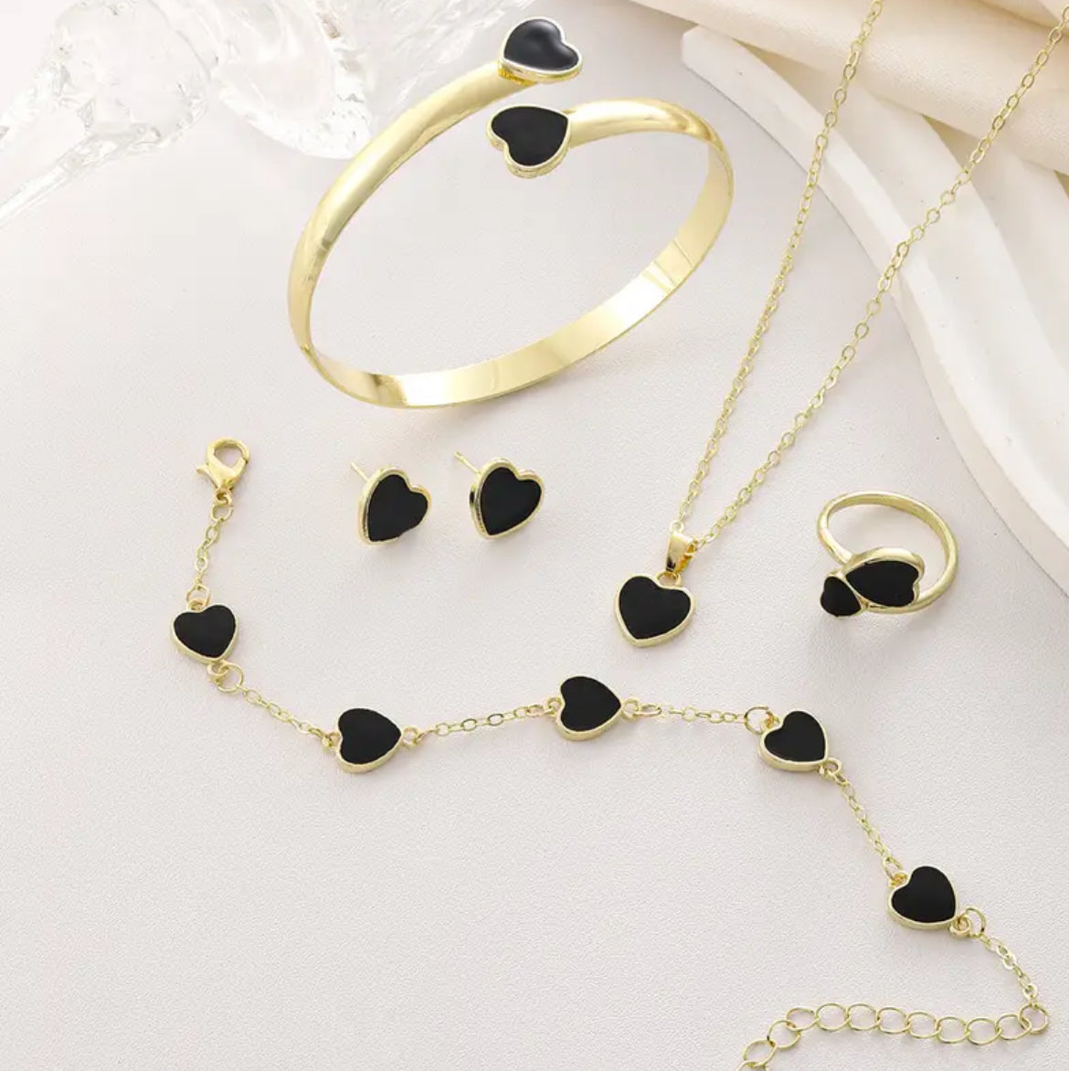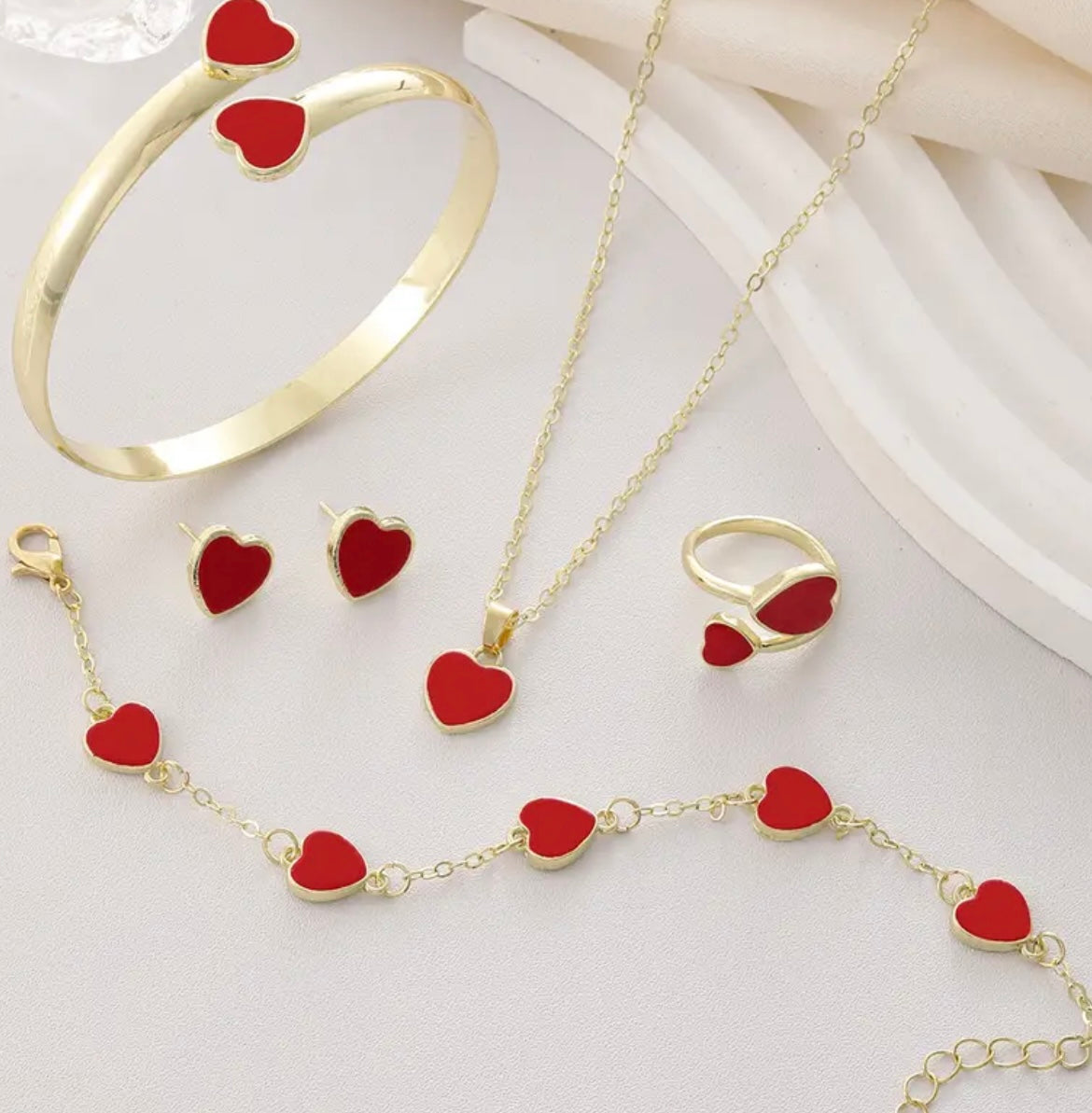 6pcs Love Simple Jewelry Set Peach Heart Bracelet Bracelet Earnail Necklace Ring Combination, Classic Fashion Women's Jewelry Jewelry Set, Valentine's Day Mother's Day Gift