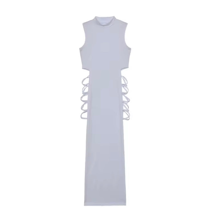 Criss Cross Cut Out Dress, Sexy Bodycon Mock Neck Sleeveless Dress, Women's Clothing