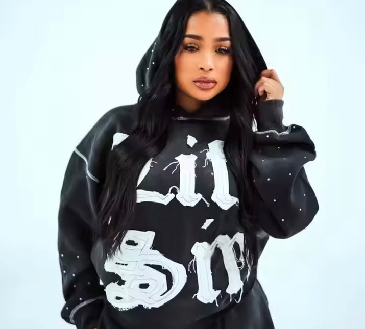Custom Tech Fleece Distress Patch Tracksuit Flared Sweatpants