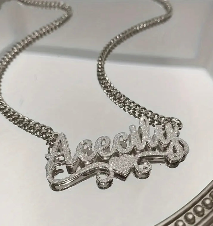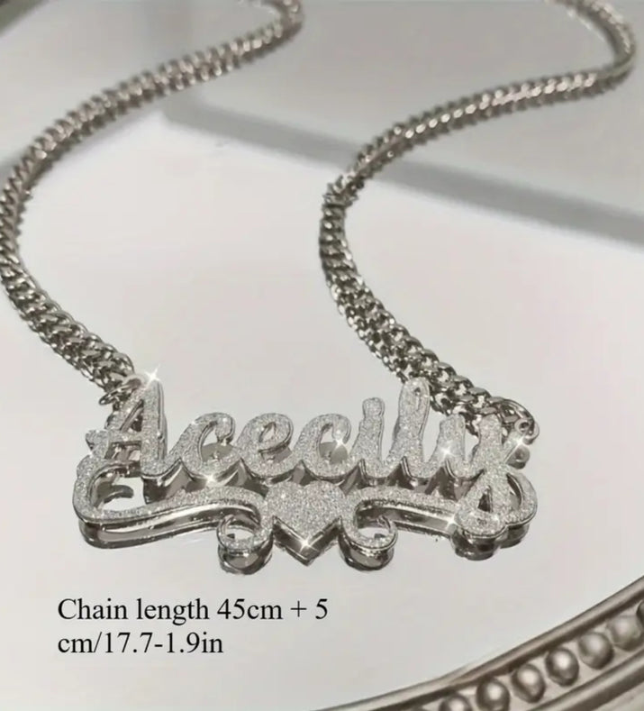 Customized Ash NK Chain 1pc Customized 201 201 Stainless Steel Name Necklace - Personalized Frosted Letter Pendant with Shiny Accents, Cuban Chain Jewelry Gift for Teenager and Teenager, Suitable for Casual Attire or Special Occasions, Gift Jewelry | Bohe