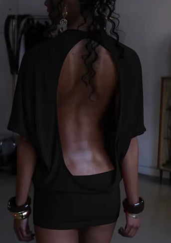 Cutenew Solid Backless Women Mini Dress Trend Summer Sexy Chic Half Sleeve Crew Neck Body-shaping Frock Mujer Simple Party Wear