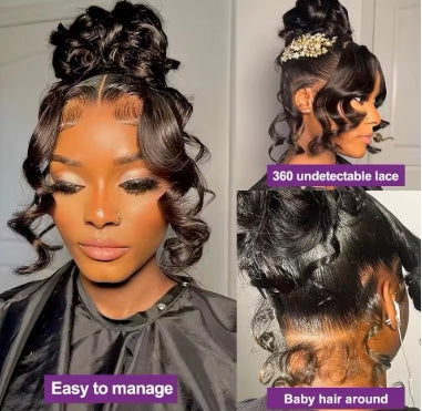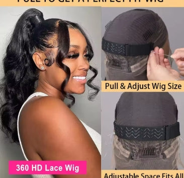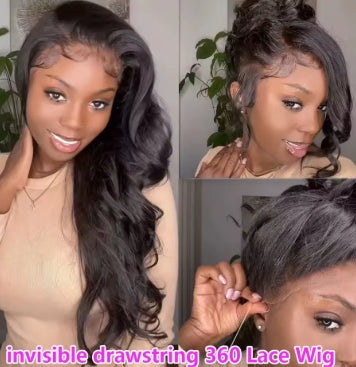Hidden Strap Body Wave 360 HD Full Lace Front Wigs Human Hair Pre Plucked 12A Glueless Brazilian Virgin Wig With Drawstring