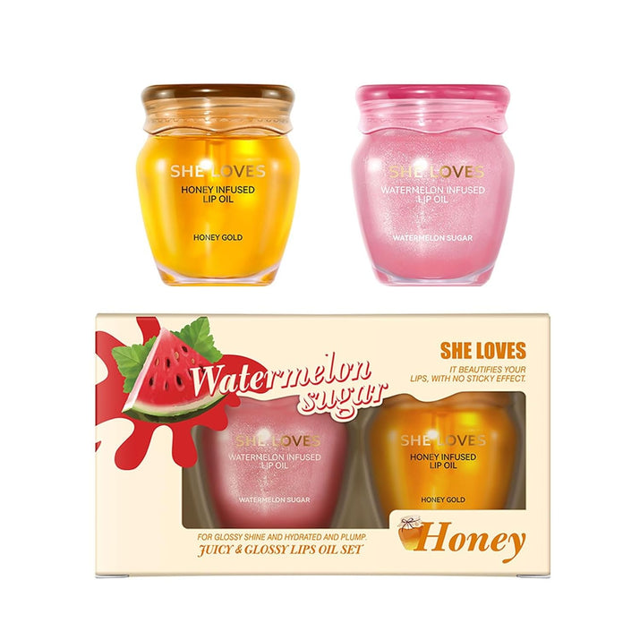 Lip Oil Set, Honey Watermelon Scent Hydrating Lip Gloss