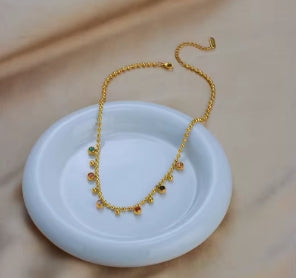 Multicolor crystal zirconia necklace made of 316L stainless steel for women, fashionable ball chain, jewelry gifts for party and wedding