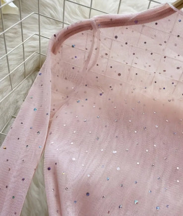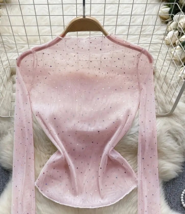 NS702 Women's Fashionable Elegant Sheer Silvery Sequined Bodycon Top