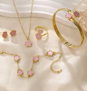 Set of 5 pcs of stainless steel jewelry with five-leaf clover 316L, bracelets for women, elegant French niche necklaces, bracelets and earrings