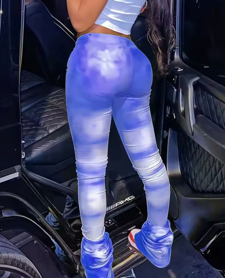 Tie-dye Casual Trousers Y2k Streetwear Autumn High Waist Trumpet Pants High Stretch Yoga Leggings