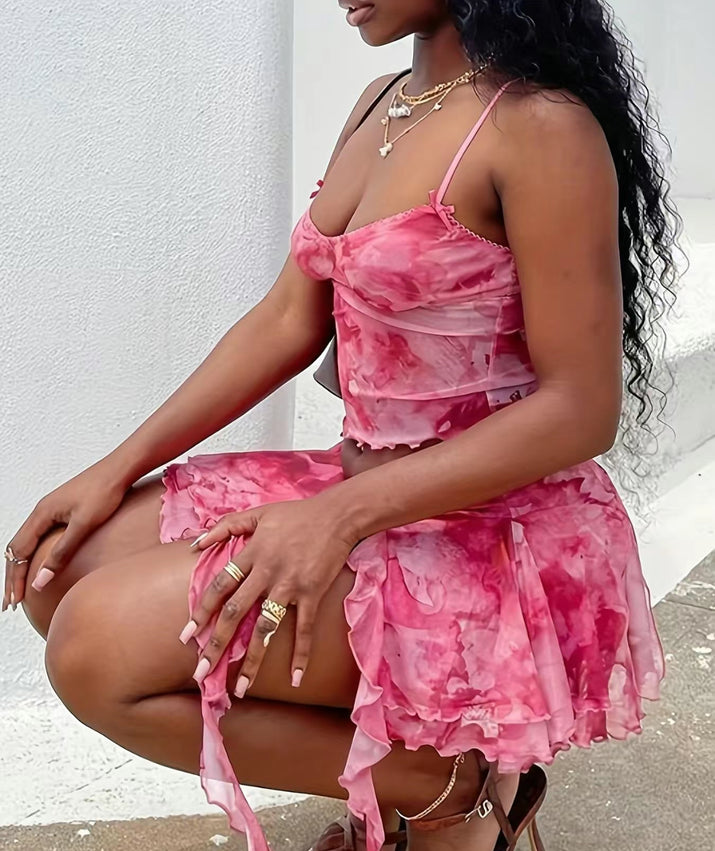 Two Pieces Women’s Set,All Over Print Crop Cami Top and Split Hem Skirt