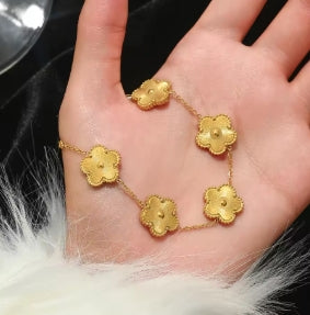 UILZ Europe & USA Hot Stainless Steel Four Leaf Clover Lucky Bracelet Women's Fashion Nail Bracelet Gold Bangles