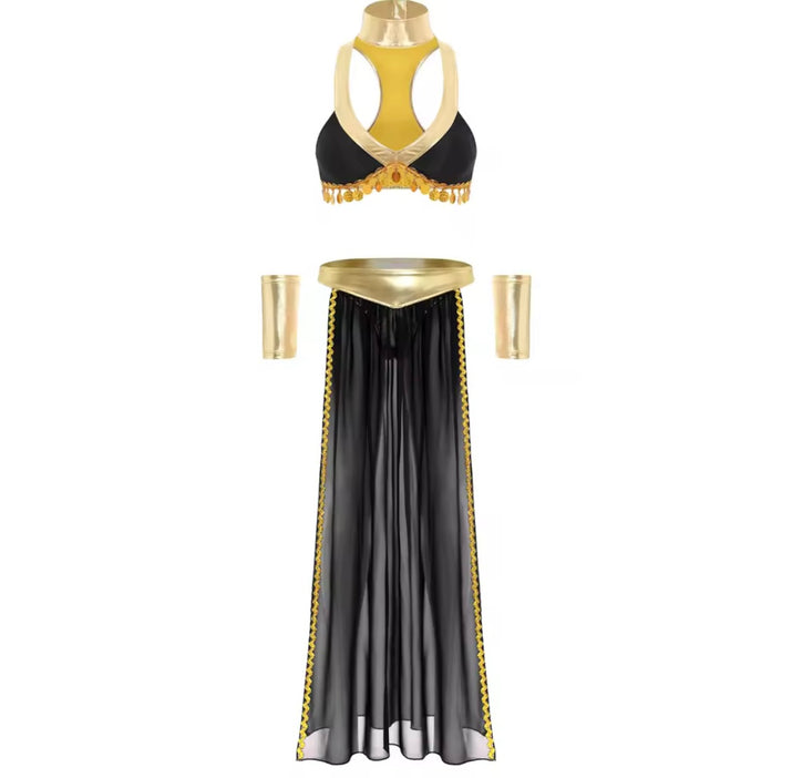 Women Halloween Cleopatra Ancient Egyptian Queen Sun Goddesses Cosplay Costume Crop Top