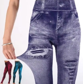 Women's imitation stretch leggings, fashionable sexy tight tights with enhancement for gym, simple high waist casual leggings, streetwear